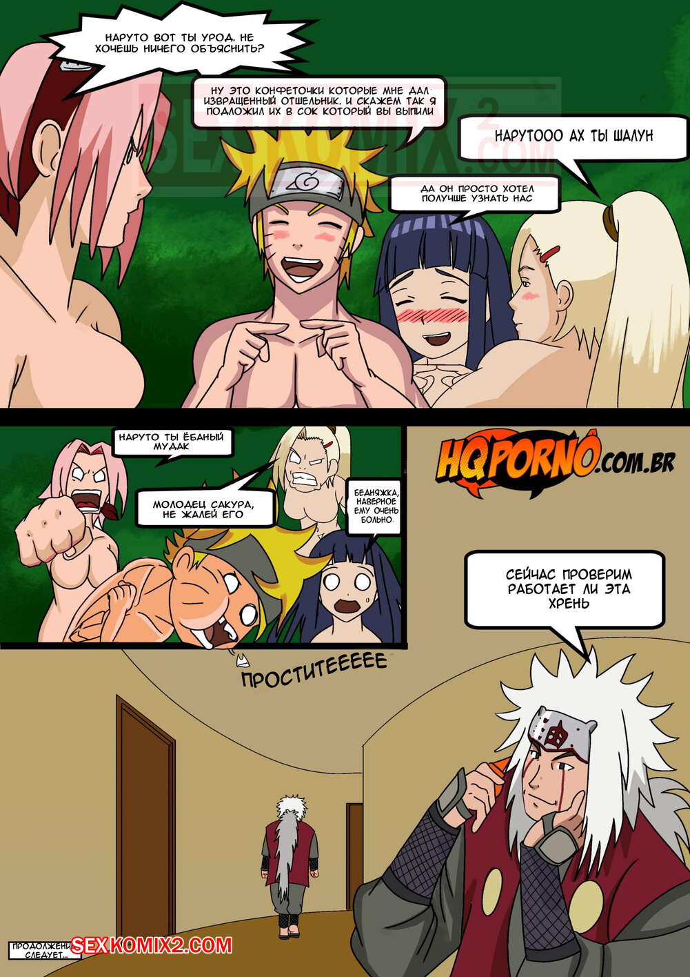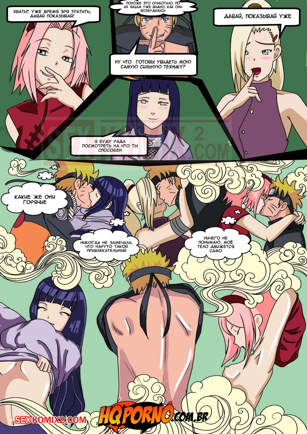 Порно комикс Наруто. Часть 2. Narutu. HQPorno Наруто напоил трех своих красоток подружек. Они невероятно сильно возбудились и решили повеселиться с горячим парнем. Они стали вместе сосать его большой хуй, после чего он выебал их по очереди.